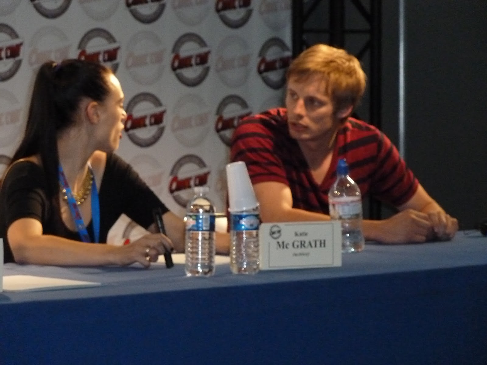 On commence alors avec des questions un peu bateau, mais toujours intéressantes. La scène la plus difficile qu'ils ont eu à tourner (pour Colin c'est une scène du 3x01 où il faisait vraiment froid et il n'arrivait plus du tout à parler, pour Katie c'est la scène pour Merlin l'empoisonne à la fin de la saison 2 parce qu'elle a fait pleurer Colin, et elle a elle aussi pleuré, et ils ont mit 4h à tourner la scène...), Est-ce que Morgana qui devient evil a changé les relations entre le casting (et Katie a répondu en déconnant, disant qu'ils ne s'occupaient plus d'elle etc... Et ça a été représenté par Bradley qui racontait sa vie à Colin juste à côté, et Katie qui criait "YOU SEE ?!", et Bradley qui reprend le file de la conversation en hochant la tête :P ) Il y a eu aussi ce qu'ils préfèrent tourner, car on a de tout dans la série, mais je me rappelle juste de la réponse de Katie, qui disait qu'elle n'avait aucune scène comique donc c'était dur pour elle.